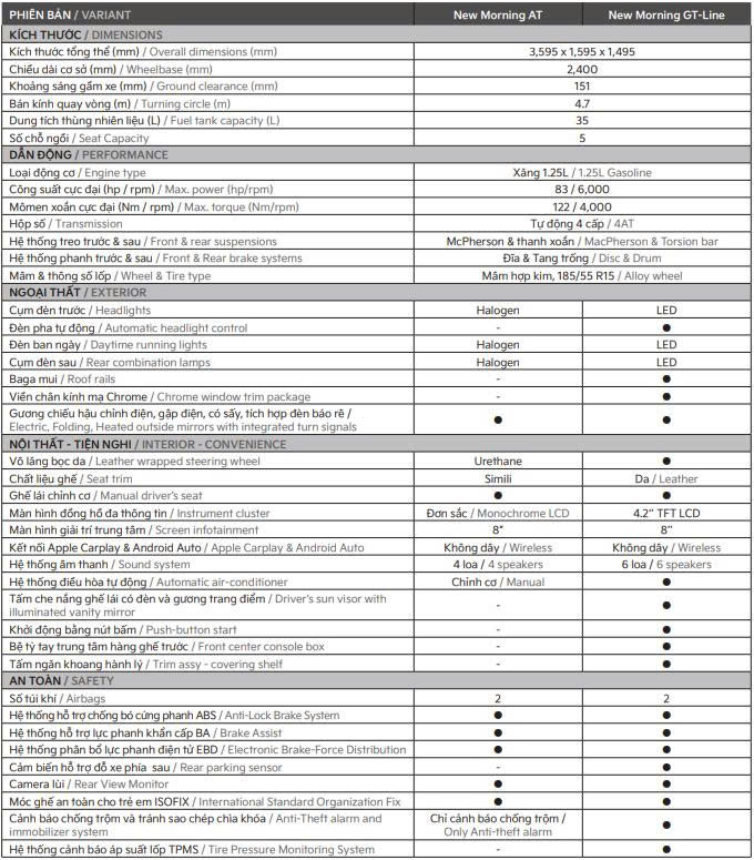 | Morning GT-LINE | 469 Triệu | LH | 541 Triệu | 143 Triệu |